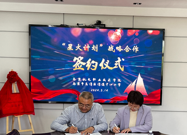 为推行“星火计划”,持续践行创客教育,并进一步深化区域内教育合作与交流,2024年5月14日上午,南京机电职业技术学院与高淳区淳溪中心小学在淳溪中心小学会议室举行了“星火计划”战略合作签约仪式。本次仪式由淳溪中心小学党总支书记王一敏书记主持,高淳区教育局副局长史联盟,高淳高职园党政办主任吴凯,南京机电职业技术学院党委委员、副校长刁爱军,南京机电职业技术学院蓝岛创客空间、信息工程系主任王国珍,淳溪中心小学校长陈梅及两校创客工作坊教师参加了签约仪式。