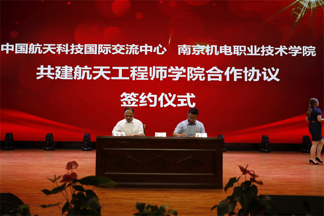 2021年5月25日,我校成功举办百年回望:中国共产党领导科技发展暨“南京职教师生的声音遨游太空”科技活动。中国人民解放军航天员大队第一任大队长申行运向南京机电职业技术学院副院长陈赵授予“新时代航天工匠人才联合培养基地”铜牌,向南京机电职业技术学院副院长刁爱军授予“航天科技教育联盟理事单位”铜牌。学校党委书记、院长周庆礼与中国航天科技国际交流中心周岫彬主任共同签署共建航天工程师学院合作意向书。双方就共建航天工程师学院建立合作关系,成为合作伙伴。