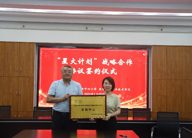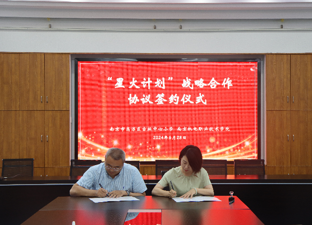 随后,双方领导共同签署了《南京机电职业技术学院—高淳区古柏中心小学合作协议书》,并共同为“南京机电职业技术学院高淳区古柏中心小学实践中心”和“高淳区古柏中心小学南京机电职业技术学院实践中心”揭牌。