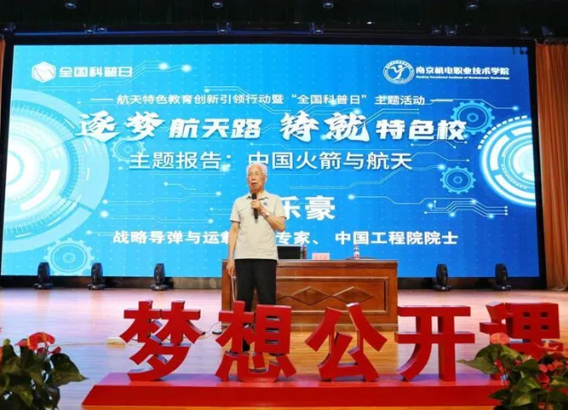 9月6日,在全国科普日来临之际,中国第一代航天人龙乐豪院士走进南京机电职业技术学院,带来一场精彩纷呈的《中国火箭与航天》主题讲座,意义非凡。