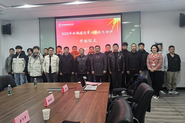 为助力退役军人顺利融入社会,提升就业创业能力,学校2025年秋季退役军人个性化培训班于11月17日正式开班,开班仪式在育德楼108会议室隆重举行。此次活动得到了南京市退役军人事务局、高淳区退役军人事务局以及南京机电职业技术学院领导的高度重视。出席本次开班仪式的有南京市退役军人事务局就业创业处主任施春雷、南京市高淳区退役军人事务局副局长沈建华、南京市高淳区退役军人事务局安置科科长吴飞平、南京市高淳区退役军人事务局安置科魏燕青;南京机电职业技术学院电子工程系主任姚小冬、培训处老师陈婷婷、授课讲师朱明浩、马知文及参加培训的退役军人。开班仪式由南京机电职业技术学院继续教育学院院长兼培训处处长周云龙主持。