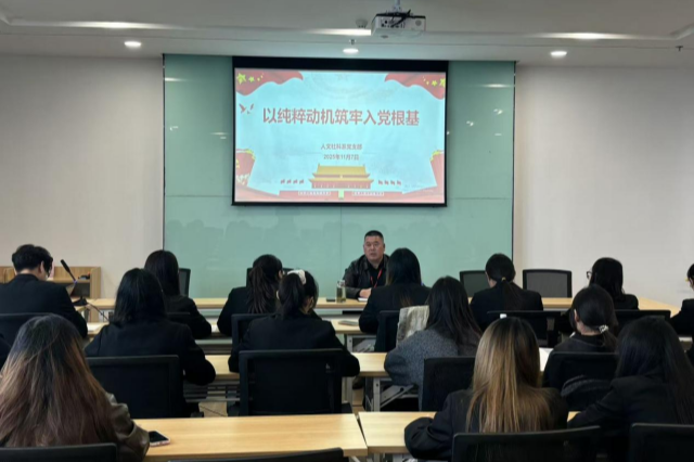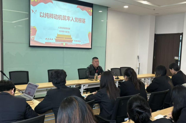 为深入推进党员发展工作,引导入党积极分子端正入党动机、强化党性修养,夯实党的后备力量建设根基,2025年11月7日,人文社科系党支部2025年度入党积极分子首期党课顺利开讲。本次党课以“纯粹动机筑牢入党根基”为主题,由系党支部书记李杰主讲,全体入党积极分子参加学习。