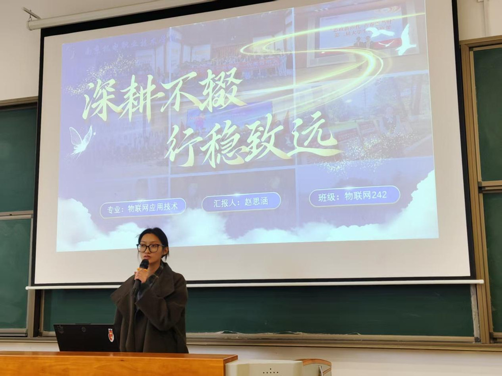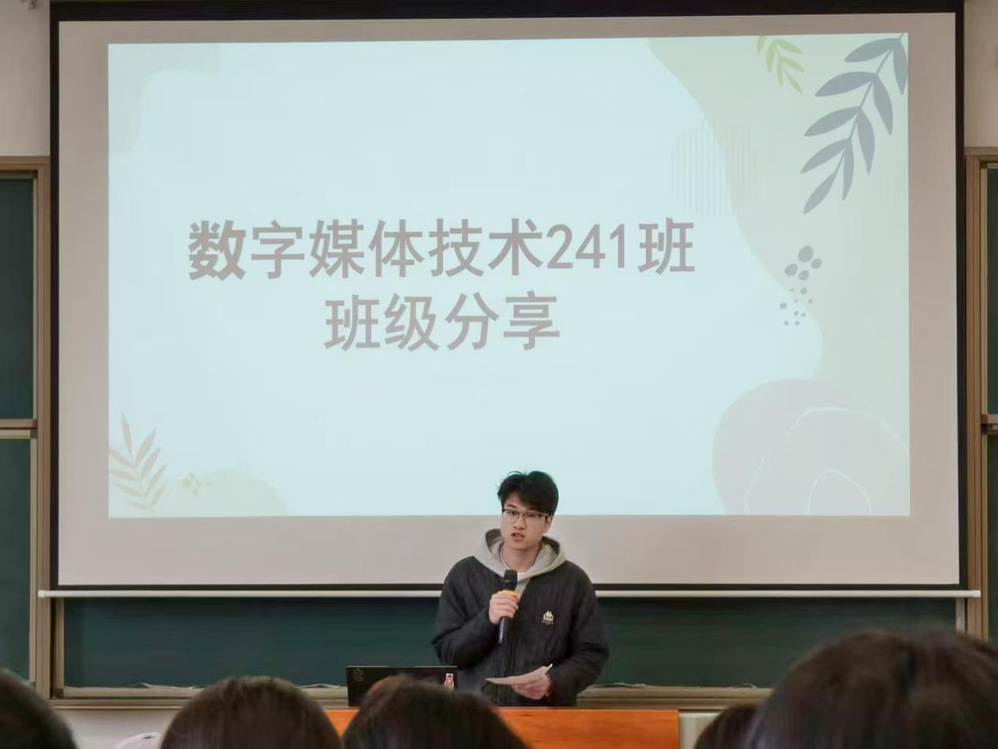 分享会上,文明班集体代表率先登台分享经验。数字媒体技术241班代表以“技术为翼,热爱为媒”为主题,分享了班级在专业创新与集体建设中的协作密码;视觉传达设计241班代表围绕“追求卓越,共创辉煌”的理念,从班级管理、学业互助、实践活动等方面展开分享,其班风学风建设成效显著,为在场各班级提供了宝贵借鉴。