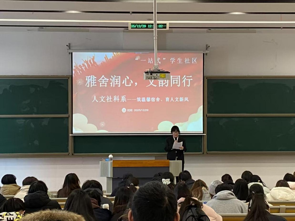 为打造安全、温馨、文明、有序的学生社区,筑牢宿舍安全防线,培育优良宿舍文化,凝聚室友深厚情谊,12月29日,人文社科系以“雅舍润心,文韵同行”为主题,成功举办“一站式”学生社区宿舍建设主题活动。人文社科系学生会指导老师梁娟娟,与全系生活委员、宿舍长共同参与此次活动。