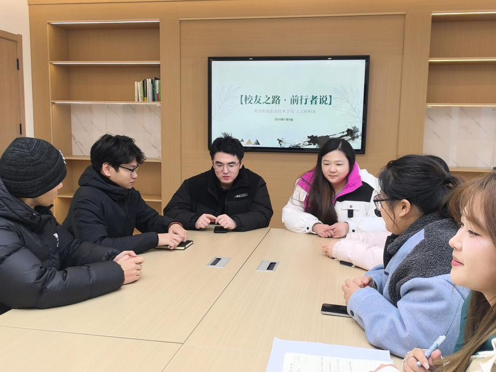 2026年1月13日,壹生涯工作室品牌栏目《校友之路 · 前行者说》正式启航。首期活动特邀金融科技应用专业优秀校友、南通理工学院大四学生胡志金重返母校,以“从专科到本科:一场自我超越的旅程”为主题,与在校学子展开了一场真诚而深入的对话。活动由壹生涯工作室负责人吴瑶老师主持,现场座无虚席,反响热烈。