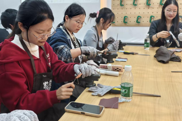 “贝光螺影间藏千年匠心,扎染青花里见东方美学”,人文社科系将中华优秀传统文化融入日常育人,让学生在指尖实践中感受文化魅力。在这里,你可以走进 “贝光螺影,指尖流光” 素养公开课,将蚌壳薄片打磨成精美的饰品,在螺钿工艺的珍珠光泽中读懂 “软木上的宝石” 承载的文化密码;也能参与 “创意扎染,艺染生活” 实践活动,在染缸与白布的碰撞中,解锁传统工艺与现代设计的融合之道。从高淳陶瓷博物馆的千年瓷韵,到 “域见官塘” 的茶禅一味,从掐丝珐琅的精雕细琢到秦淮灯彩的非遗传承,系部打造的 “沉浸式文化体验矩阵”,让每一位学生在动手实践中提升审美素养,增强文化自信,让传统文化基因在青春心中生根发芽。