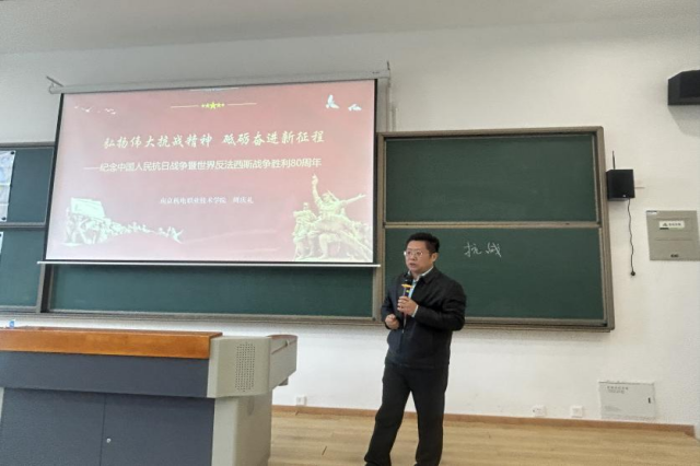2025年11月25日,学校党委书记、校长周庆礼在勤学楼105教室,以“弘扬伟大抗战精神砥砺奋进新征程——纪念中国人民抗日战争暨世界反法西斯战争胜利80周年”为主题,为机电一体化技术专业学生讲授了一堂富有思想性、理论性、亲和力和针对性的《形势与政策》课。马克思主义学院教师观摩学习。