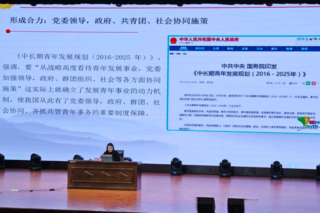 开班第一课上,校团委书记孙晓燕围绕共青团百年发展历程带来专题讲解。她带领学员们回溯共青团在党的领导下,团结带领一代又一代青年投身革命事业的光辉岁月,讲述不同历史时期青年团员的使命担当与青春故事,让学员们深刻感悟共青团组织“党有号召、团有行动”的优良传统,深刻领会青年一代的使命与荣光,激发起大家奋进新征程的青春热情。