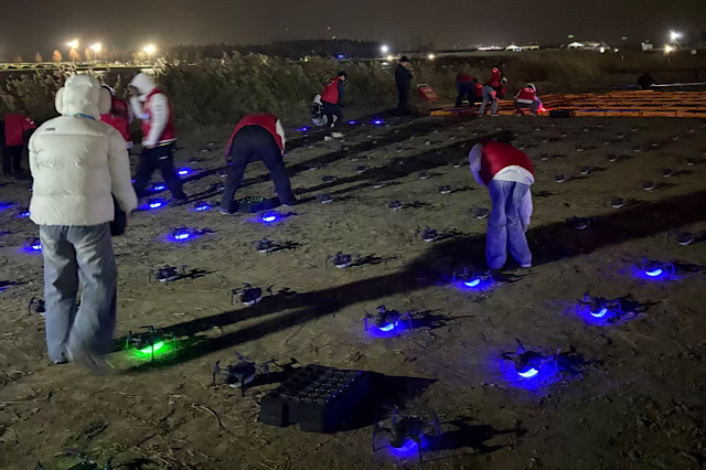 相较于娱乐区的热闹,无人机保障区志愿者在幕后默默忙碌,以专业服务为光影盛宴保驾护航。作为无人机表演核心保障力量,他们肩负电池装卸、设备维护及撤收任务。从前期电池检查安装,到表演间隙更换清洁,再到结束后分类收纳,每环节都细致规范、一丝不苟,紧盯设备状态记录数据,确保表演无缝衔接。