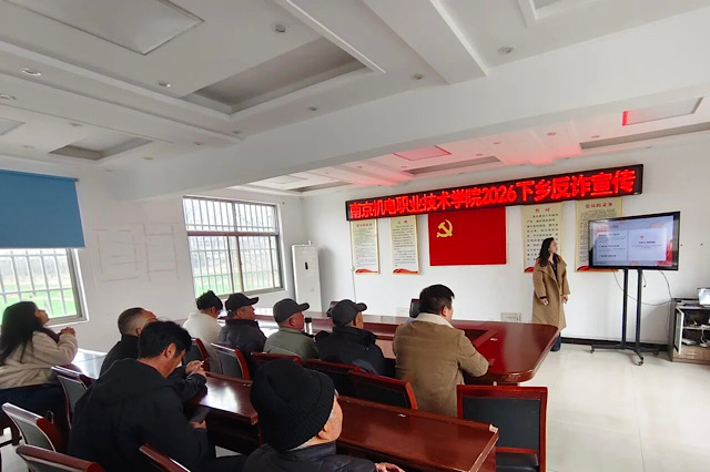 元宵佳节至,团圆庆安康,反诈不松弦。为传承中华优秀传统节日文化,筑牢乡村反诈安全防线,2026年寒假期间,信息工程系“防诈骗,我们在乡行动”社会实践小分队再度出发。3月3日元宵佳节当天,小分队的同学们走进连云港市赣榆区班庄镇山西村社区,开展“闹元宵,防圈套;南机电学子,为平安打Call”主题反诈宣传教育活动,在喜庆祥和的团圆氛围中,为乡邻们送上一份暖心又实用的反诈“平安礼包”。