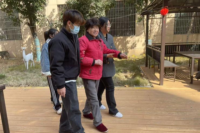 劳动之余,同学们围坐在老人身边,陪他们聊家常、听他们讲故事。大家耐心倾听,现场气氛温馨融洽。院区的林荫小道上,同学们搀扶老奶奶散步,通过面对面的陪伴,同学们不仅为老人们带去了精神慰藉,也在倾听中收获了人生的智慧与感悟。