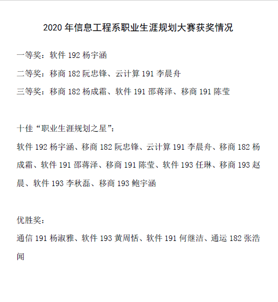 受新冠疫情影响,各行各业都被迫按下了暂停键,但是2020年信息工程系的职业生涯规划大赛依旧如火如荼地进行着,今年信息系参加职业生涯规划大赛的共有350名同学,经过系部海选、班级推选,29名同学从中脱颖而出。