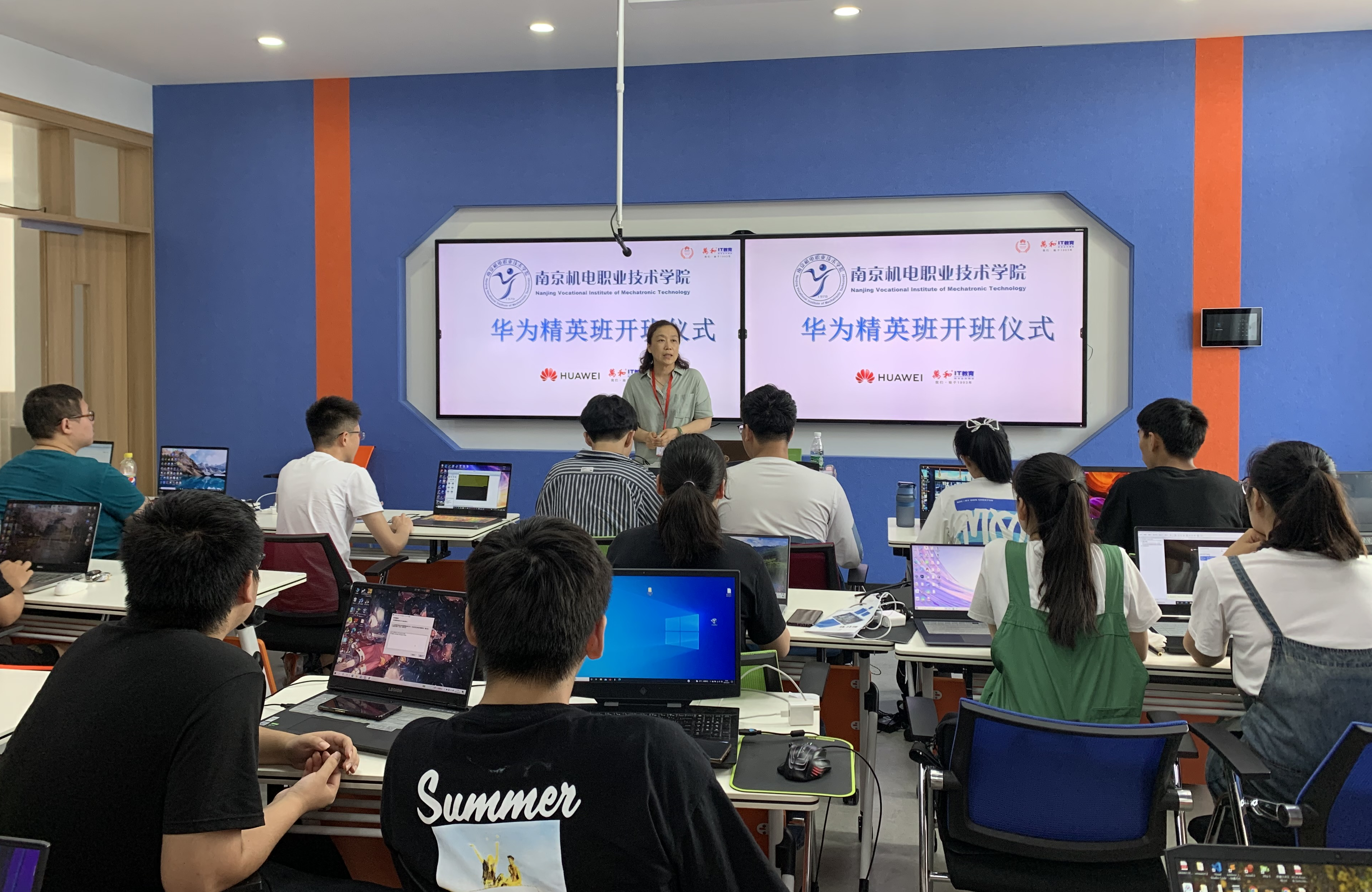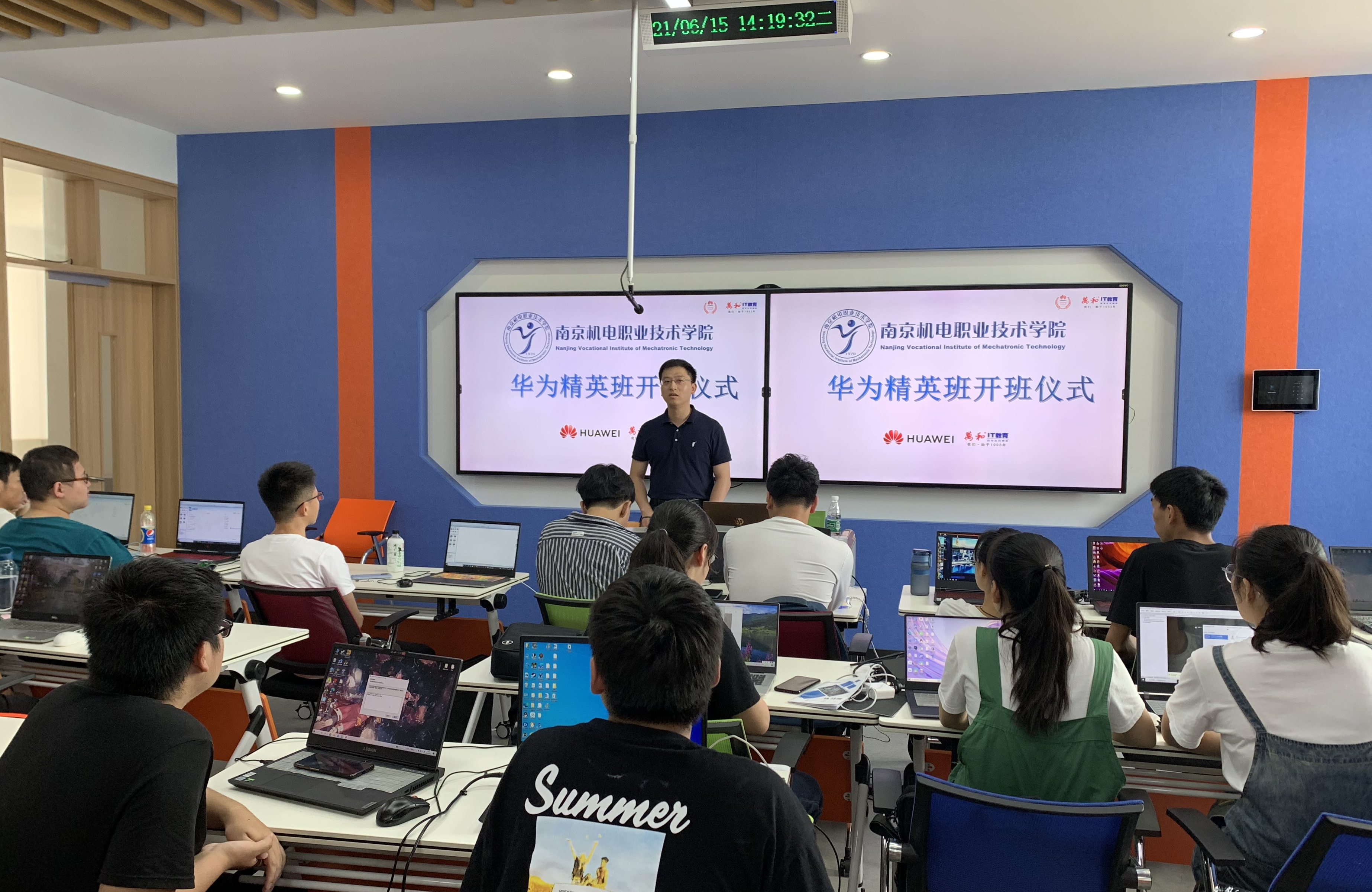6月15日下午,华为精英班在博学楼410室举行了开班仪式。信息工程系主任王玮、华为江苏教育生态总监杨鹏、江苏万和教育经理陈闯、华为精英班授课教师王永巧和班主任喻志华参加开班仪式。仪式由喻志华主持。