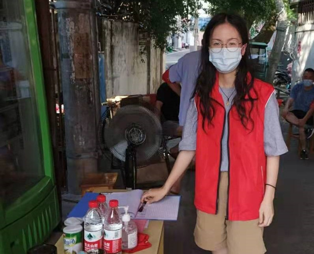 吕雯妮同本来是江苏省南京市高淳区大桥社区的一名暑期共青团助理,但7月21日突如其来的疫情打破了这平静的生活,随着暑期共青团助理工作的结束,她自愿成为了一名抗击疫情的志愿者。7月21日当晚说要进行“全民核酸“,她从下午三点社区书记开会讨论分工问题开始,到后来进入到维护秩序、帮医护人员进行登记,不知不觉就忙到了凌晨两点才结束工作。