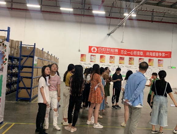 在参观百世仓储中心过程中,其精美货品包装、有秩序的货架归类摆放、专业的电脑扫描货品和严格的发货系统,让每一位现场参观的学生们受益匪浅,并不断用照相机记录下专业的仓储物流实践画面。