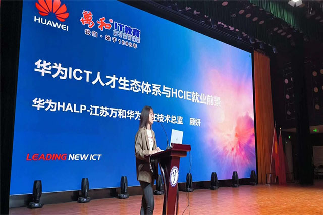 顾妍老师为我们详细介绍了华为公司及其企业文化,华为公司的生态体系,华为ICT学院,华为认证介绍,华为认证的作用,考取华为认证的流程,以及江苏万和系统工程有限公司与南京机电职业技术学院的合作历史等内容。