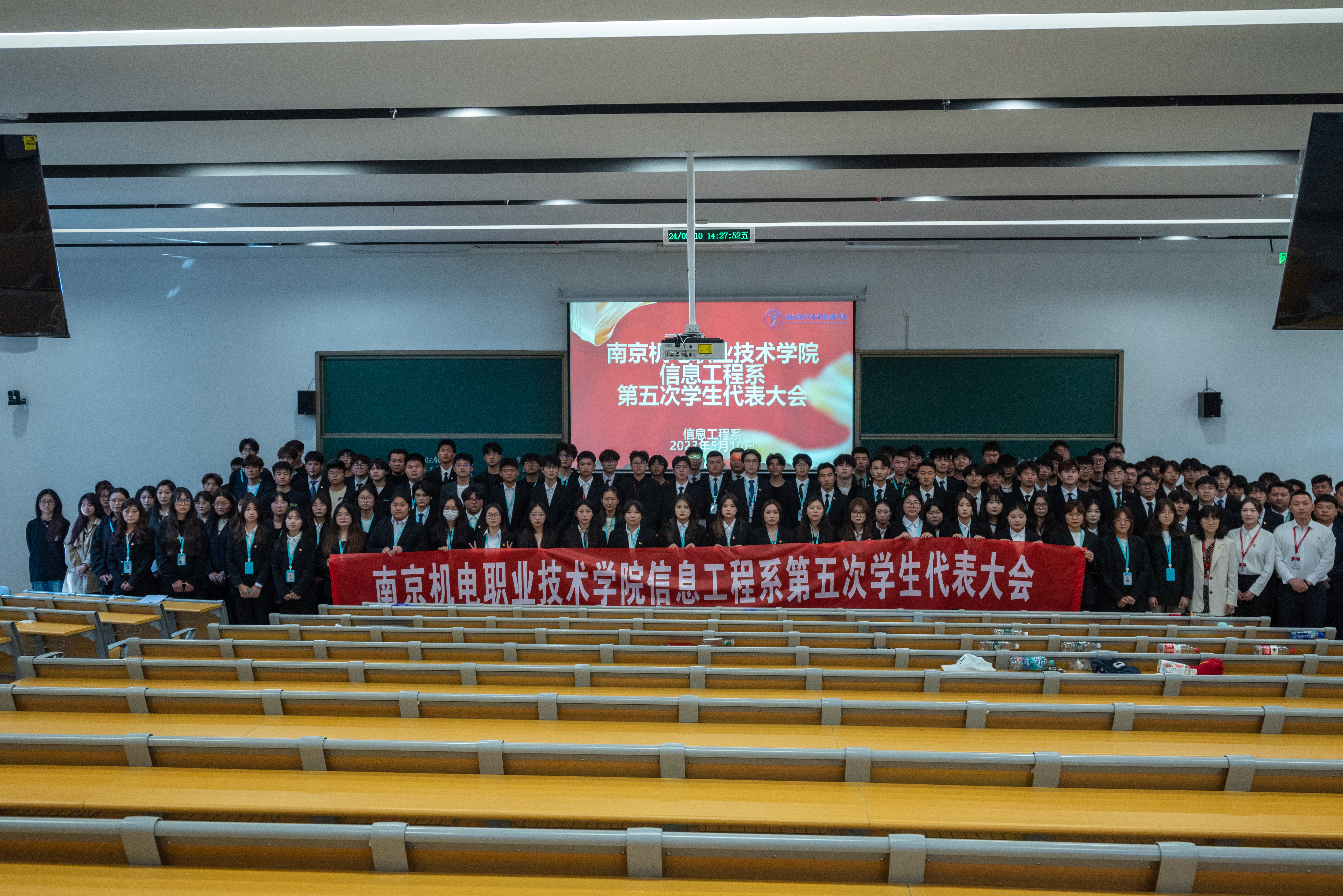 2024年5月10日,信息工程系第五次学生代表大会正式会议于善学楼204顺利召开,此次会议由信息工程系党支部书记胡枫,学工干事郝麒,团委书记沈歆岩,校学生会指导老师钱莉娇与120名代表共同参会。会议由学生会主席邰荣峰主持,大会不仅是对过去学生工作的全面回顾与深度审视,更是对未来发展的新方向、新目标、新举措的谋划与部署。