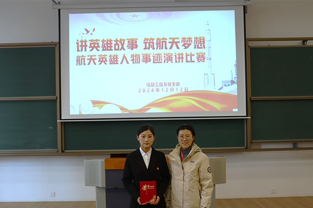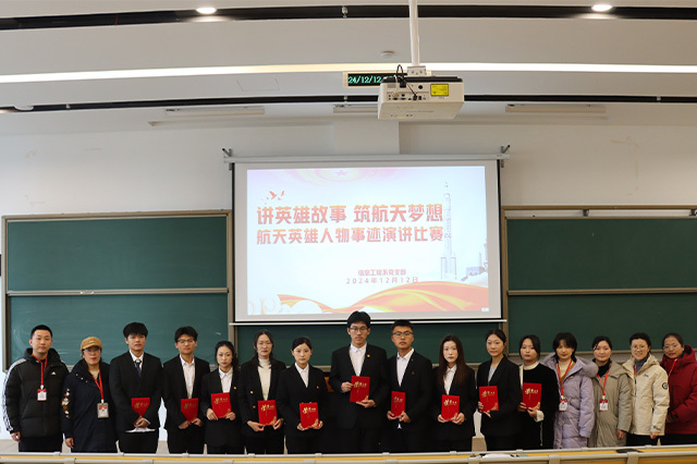 在这片广袤无垠的宇宙中,星辰璀璨,承载着人类对未知世界的深切向往;火箭轰鸣,宛如一曲对宏伟梦想的壮丽颂歌。12月12日,信息工程系党支部“讲英雄故事,筑航天梦想”演讲比赛决赛,在善学楼102教室圆满落下帷幕。