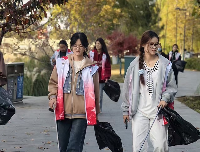 手持垃圾袋的年轻身影,恰似跃动的音符。俯身拾起的不仅是片片纸屑,更是一座城市对文明的守望。那抹跃动的志愿红,让寻常街道瞬间变成流动的课堂——原来,最美的风景不在远方,正藏在这躬身拾捡的温柔里。青春与城市在此刻达成双向奔赴。这弯腰的姿态,恰是这个时代青年人最挺拔的模样。