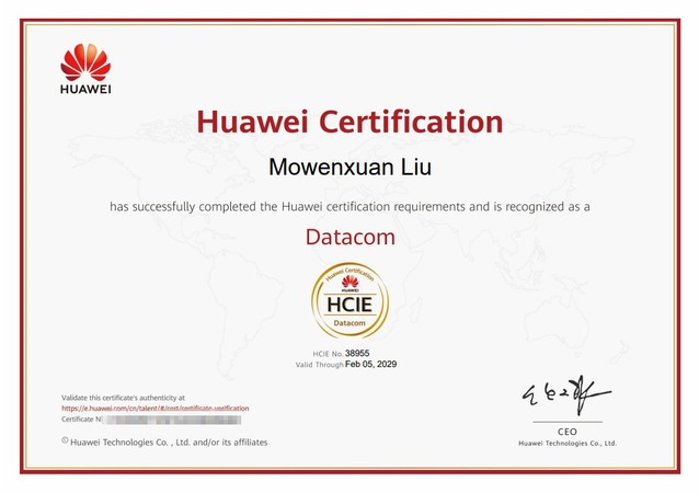 在南京那个小小的出租屋里,他熬过了无数个深夜。2026年2月6日,他终于拿到了属于自己的HCIE证书。