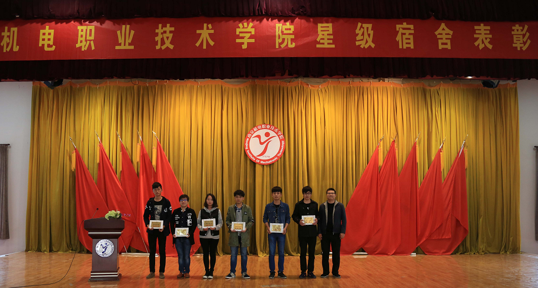 首先,大学生生活服务与管理中心主任韩燕军宣读了《关于表彰南京机电职业技术学院2016年度星级文明宿舍的决定》,随后,学院、学工处、团委等领导分别为三星级文明宿舍代表、四星级文明宿舍代表、五星级文明宿舍代表及受表彰的优秀楼层长代表授牌、颁奖。