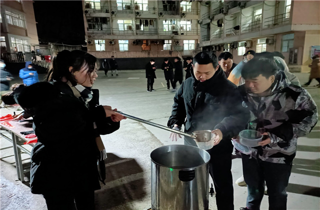 萧瑟的寒风中,同学们自觉有序的排队,手持饭盒,学工处处长张宝中手持长勺给学生们添上一勺勺热乎乎的八宝粥,口中一声声的“小心烫”“再来一勺吧”是一份份沉甸甸的心意,让远离家乡,身离父母的学生体会到学院最温暖的关怀,让爱变得有温度!而学生口生一声声”谢谢老师“”老师辛苦拉“便是冬日里最温情的关怀!