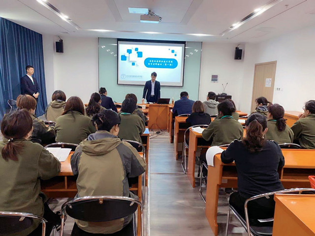 会议伊始,薛蒙经理介绍了本次培训工作目的,并希望全体宿管老师认真学习做好笔记,学以致用,优化工作方法,提高工作效率。杨卓名主管结合自己的经验,从宿舍管理基本要求、基本业务和各岗位工作职责对全体宿管老师进行了业务培训,培训过程采取提问和问答的方式,与宿管老师进行互动,了解老师们对基本工作任务掌握情况。