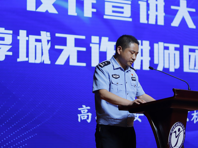 史先英在启动仪式上发表讲话,他表示,一直以来,公安分局都十分重视校园安全保障特别是校园反诈工作,南京机电职业技术学院作为高淳区首所高校,各项工作对于其他入驻高淳的院校都具有示范效应,同时广大学子也是反诈宣传工作的“生力军”。希望通过本次反诈宣讲大练兵活动,加深民警辅警与大学生的互动交流,增强双方的宣讲实力,带动更多社会力量参与到全民反诈的攻坚战中,为共建“无诈校园”、“无诈淳城”贡献力量!