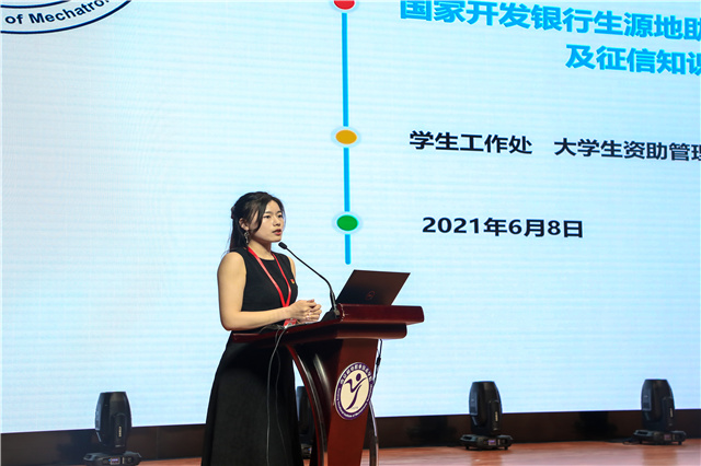 活动伊始,大学生资助管理中心主任孙晓燕结合我院实际情况向同学们简单介绍了国家对于学生生源地信用贷款的相关政策。通过简洁明了的流程图片向学生解释了贷款及还款的方式方法,强调了各项申请的时间节点,以此让同学们一目了然。随后,她向在场同学们详细介绍了个人征信系统对于自身的利弊,再三强调贷款还款逾期等不良记录的严重性,希望在场学生引以为戒。整场讲座内容详实、条理清晰,给在场的学生留下了深刻的印象。