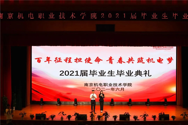 优秀毕业生李渊同学代表全体2021届毕业生发言,他讲述了自己在南京机电三年青春追梦的故事,向老师们表达了感激之情。李渊同学讲到,无论走到哪里,都要做跟紧新时代、追求新理念、拥有新视角的机电人,以实际行动为中华民族伟大复兴而贡献青春力量。