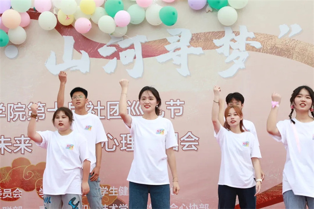 在活动开幕式上,院学生会心协部成员向同学们展示了《一起向未来》手语操表演,同学们热情澎湃的表演也拉开游园会的序幕。