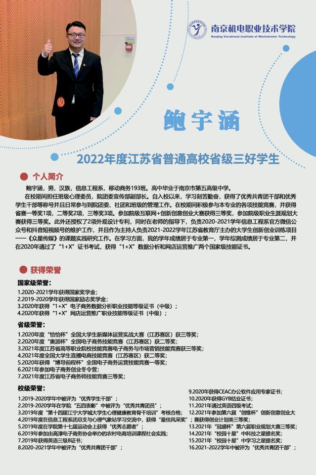 南京机电职业技术学院2021—2022年省级三好学生、优秀学生干部、优秀毕业生和先进班集体风采展示