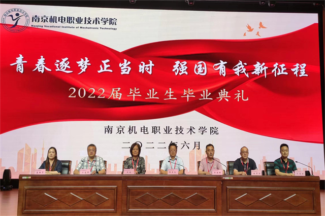 青春逐梦正当时,强国有我新征程。2022年6月24日,南京机电职业技术学院2022届毕业生毕业典礼在线上举行,学校党委书记、院长周庆礼,党委副书记、纪委书记、副院长陈赵,党委委员、副院长郭朝辉,党委委员、副院长赵学洪,党委委员、副院长刁爱军,党委委员、副院长孔德丽,党委委员、工会主席姜振宇出席了毕业典礼。