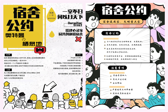 在大学生健康成长中心举办的“DIY宿舍公约”主题活动中,同学们积极参与,收到了不少优秀的作品!