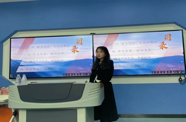 孙梦琪从服务同学、实践出真知等方面分享了自己总结的经验。她着重介绍了在完成学业的同时也要做好自己的学业以及职业规划,有目标才能坚定不移地走下去。