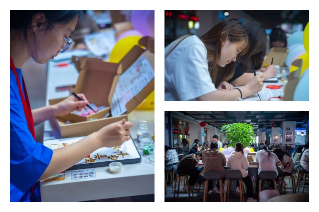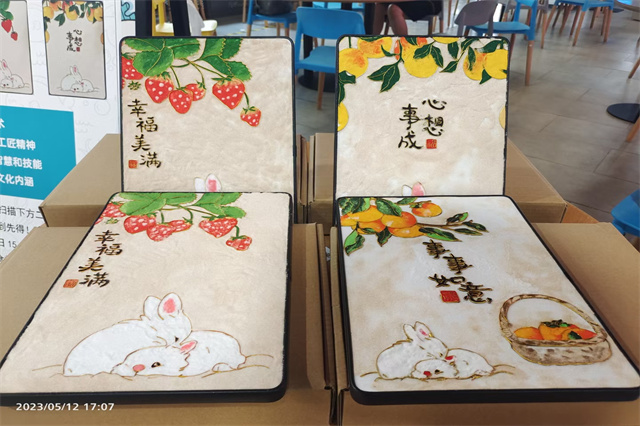 点蓝是决定最终效果的关键一步。点蓝的方法比较麻烦,需要将沙料、水和胶水按比例混合,再用铲子将沙料填到画面里。校学生会心协部的同学在现场进行了讲解和指导,在制作过程中每位同学都展现了极强的艺术天赋。