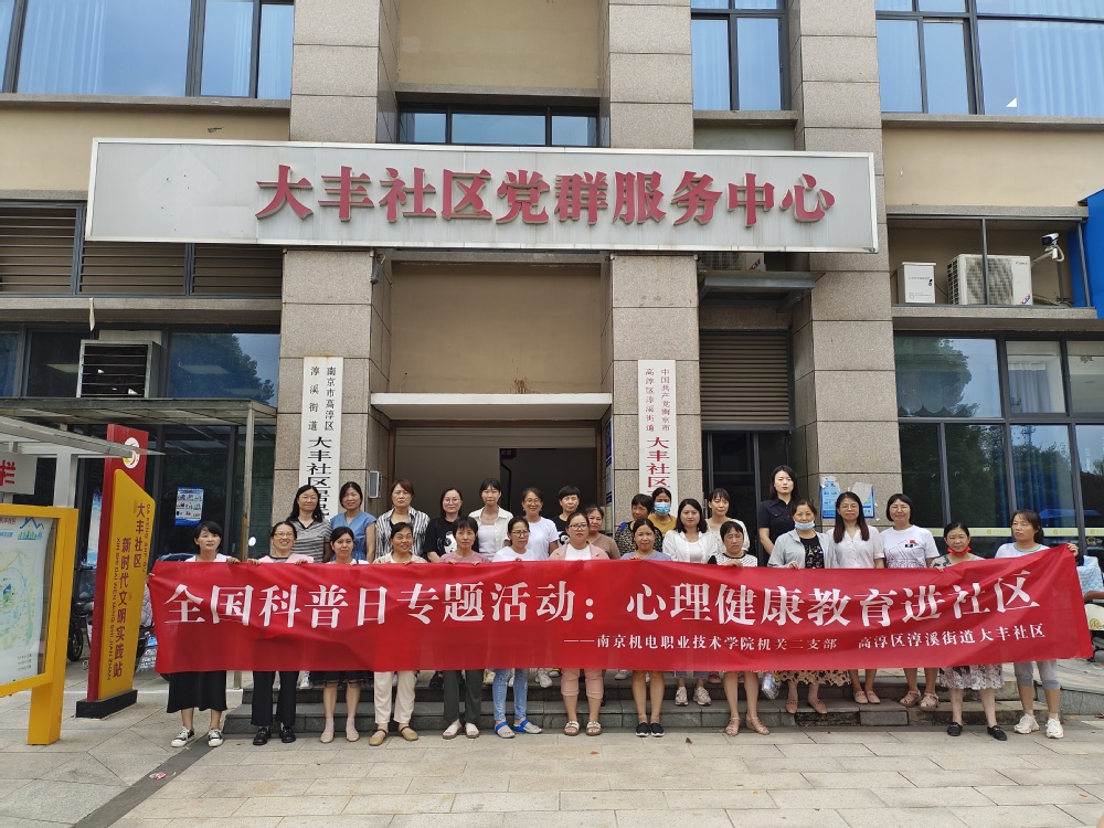 为贯彻省教育厅《关爱青少年生命健康“润心”行动实施方案》精神,进一步加强社会心理服务体系建设,近日,南京机电职业技术学院学生工作处大学生健康成长中心在高淳区淳溪街道大丰社区开展了“温暖家庭 陪伴成长”全国科普日专题讲座活动,把健康知识传递到居民身边。