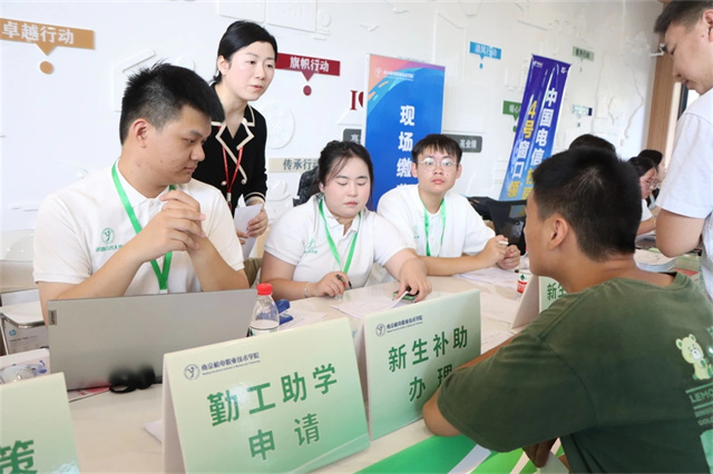 9月8日,2024级新生带着对大学的美好憧憬踏入南京机电职业技术学院校园,正式开启乘风破浪之旅。为保障家庭经济困难新生顺利入学,学校在“一站式”学生社区事务服务中心开通“绿色通道”报到专区,帮助家庭经济特困学生办理减免学费、缓缴学费,办理助学贷款回执录入、缓缴学费,提供伙食补贴、路费补贴、爱心大礼包等一站式暖心服务,精准助力200余名家庭经济困难学生顺利入学,为大学生涯保驾护航。