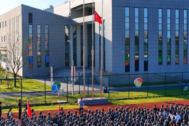记忆从未褪色,历史仍有回响。2024年9月18日,正值新中国成立75周年,九一八93周年,在这个承载着沉重历史记忆的特殊日子里,南京机电职业技术学院举行了庄严的九一八升旗仪式,以缅怀先烈,弘扬抗战精神。此次升旗仪式在田径场举行,军训全体学员、教官和值班老师参加,仪式由学生工作处处长张宝中主持。