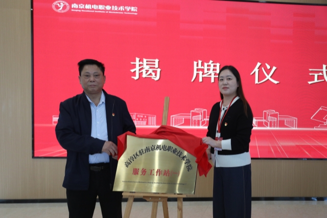 高淳区委政法委副书记葛继龙和我校纪委书记姜振宇共同为“高淳区驻南京机电职业技术学院服务工作站”揭牌,揭牌仪式的完成,象征着新的篇章已然开启。