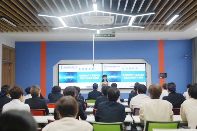 在新时代的浪潮中,新媒体以其独特的魅力与广泛的影响力,正逐步渗透到社会生活的各个角落,也为高职院校的宿舍文化建设与管理带来了前所未有的机遇。为紧跟时代步伐,充分利用新媒体资源,提升宿舍文化品质,10月16日上午,学校“一站式”学生社区生活服务中心面向宿舍管理人员组织开展业务能力培训。此次培训邀请党委宣传部网络思想政治工作中心办公室主任贺竞男担任主讲,培训主题为《新媒体视角下高职院校宿舍文化建设与管理》。