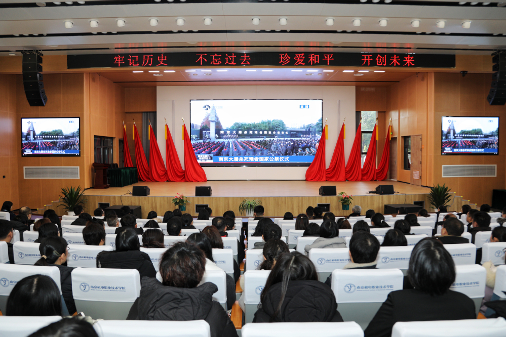 为铭记历史,悼念南京大屠杀死难者和所有惨遭日本侵略者杀戮的死难同胞,弘扬以爱国主义教育为核心的民族精神,2024年12月13日,南京机电职业技术学院积极响应党中央号召,在乐学楼101举行国家公祭日悼念活动。悼念活动由学校党委委员、党委工作部副部长高水冕主持。学校党委委员、全体党员、无课学生共同参与。