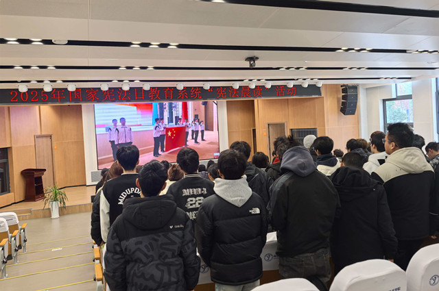 为响应国家宪法日教育系统普法号召,深化青年学生对宪法的认识与理解,12月4日上午我校组织部分学生在乐学楼集中收看2025年国家宪法日教育系统“宪法晨读”活动直播,以线上学习的形式感受宪法庄严,培育法治观念。