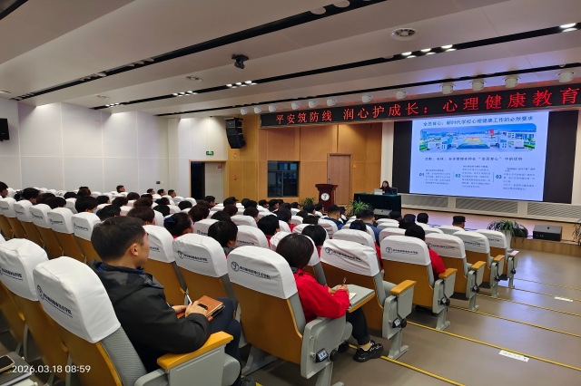 3月18日上午,学生工作处召开2026年新学期学生公寓管理工作会议,同期开展心理健康教育专题培训。学生工作处处长张宝中主持会议并部署公寓年度重点工作,全体宿管人员参加。