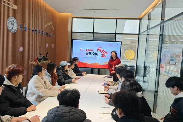 为深化青年学生思想政治引领,聚焦重要时事政策学习,引导广大青年学子明晰使命担当、凝聚奋进力量,3月11日,校学生会精心打造的首期“青听·青为”研习会顺利开展。本次讲堂紧扣当下热点时事,以2026年全国两会精神学习为核心内容,校学生会指导老师钱莉娇现场授课分享,全体学生会骨干成员齐聚一堂,共学政策要义、共话青年担当,在思想交流与碰撞中筑牢信仰之基,补足精神之钙。