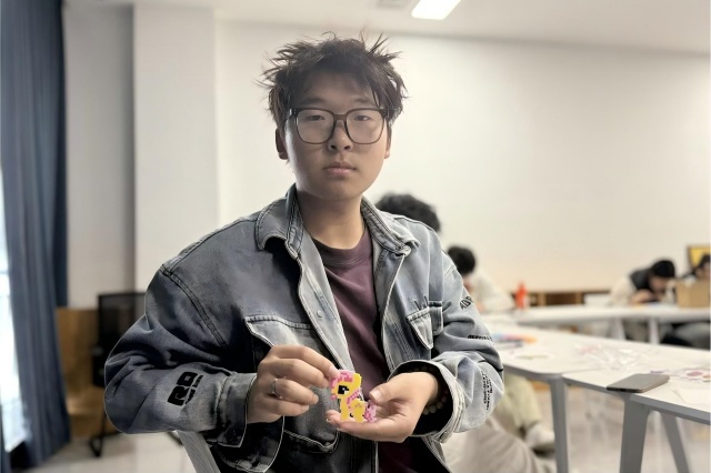 创作环节中,“一站式”学生社区内暖意融融,彩色拼豆在同学们手中流转,现场瞬间变身充满创意与温情的“彩豆工坊”。同学们有序领取材料包,或独自沉思、精心构思,对照图样将一颗颗小巧的拼豆精准嵌入模板,眼神专注而认真;或三五成群、轻声交流,分享配色技巧与创作思路,在互助协作中拉近彼此距离。从简单的几何图案到可爱的卡通形象,从简约的文字造型到创意十足的个性设计,每一颗拼豆都承载着同学们的心意,每一次拼搭都凝聚着专注与耐心。现场没有紧绷的节奏,只有指尖与豆粒的轻触、创意与灵感的碰撞,原本略显拘谨的氛围,在欢声笑语中变得热络而温馨。