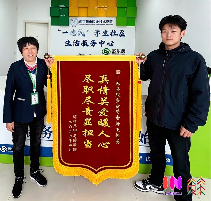 凌晨1点10分,南京机电职业技术学院博雅苑宿舍楼最后一盏灯熄灭。宿管员王恒英在值班日志上写下:“4月15日,马骏同学安全归寝,纠纷妥善解决。”这一夜,她的一次“多问一句、多陪一程”,帮助学生追回近两万元经济损失,还牵出背后上万元的经济纠纷。事后,学生送来一面锦旗,上书“锦旗传暖意,初心寄学子”。
