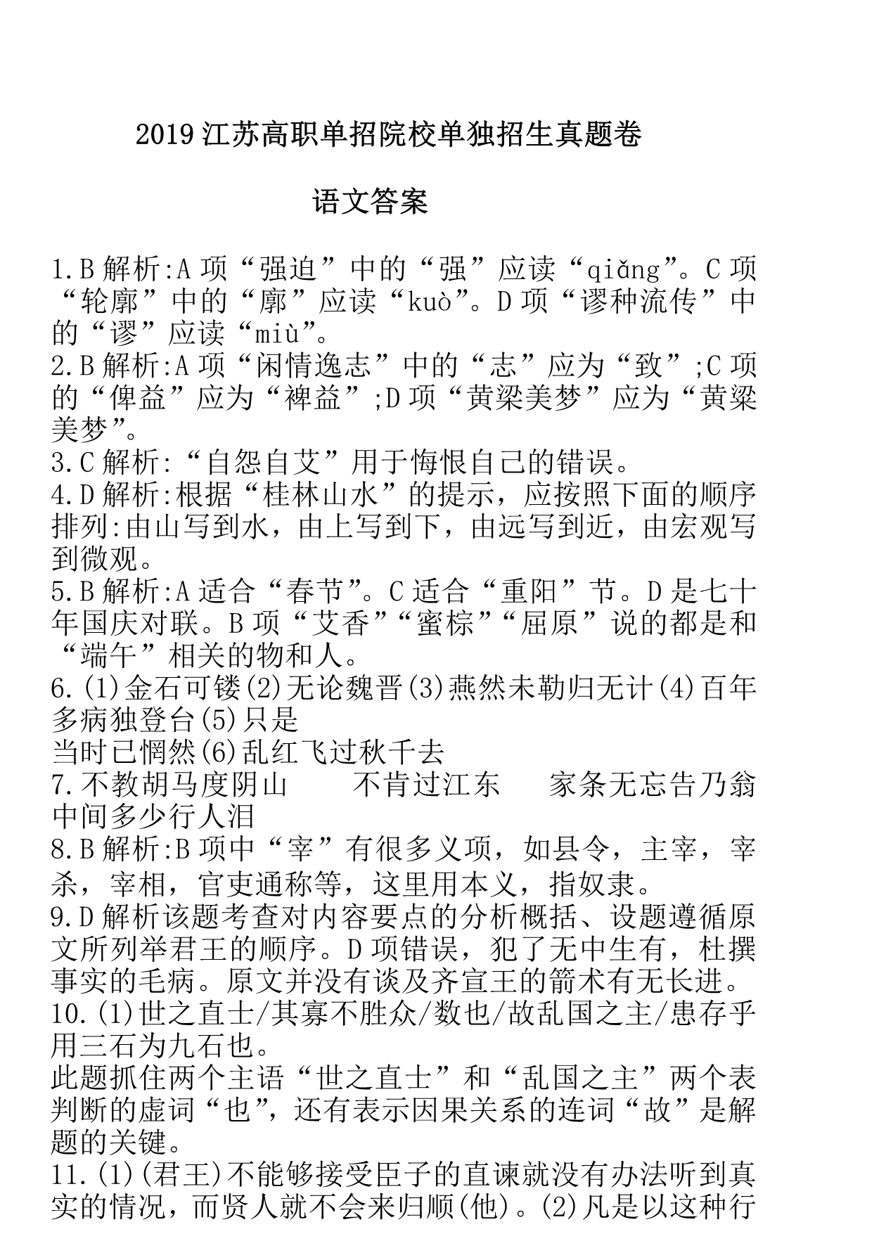 点击下载 2019年江苏省提前招生真题卷(语文)