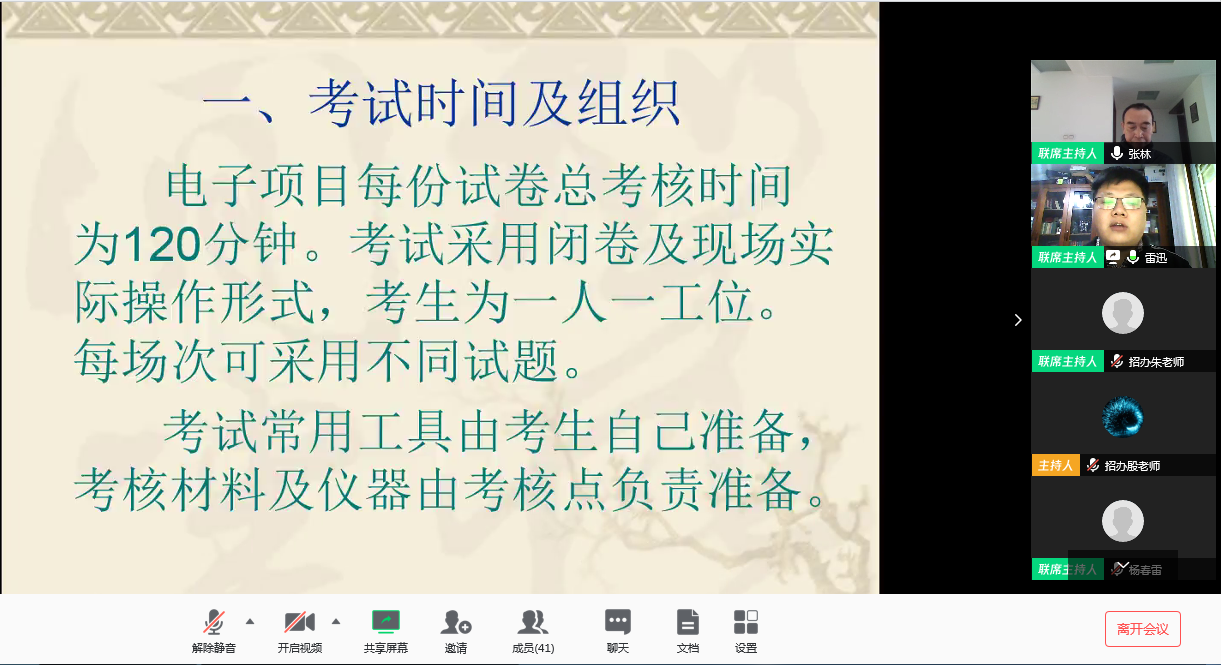 本次讲座,邀请了南京机电职业技术学院电子工程系张林老师和雷迅老师担任主讲。张林老师围绕“点长车电路的安装与调试”、“正反转电路的安装与调试”、“星三角降压起动电路的安装与调试”等典型任务,对电工技能训练等知识进行了详细分析和讲解。雷迅老师从“考试时间及组织”、“考核内容及权重”、“考试标准”等方面,针对对口单招电子电工技能考试标准进行了解读。