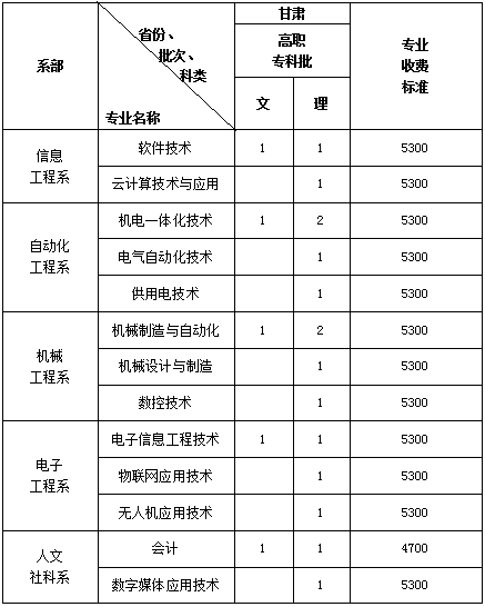 自动化工程系 | 机电一体化技术 | 甘肃 | 文科 | 零投档 | ||